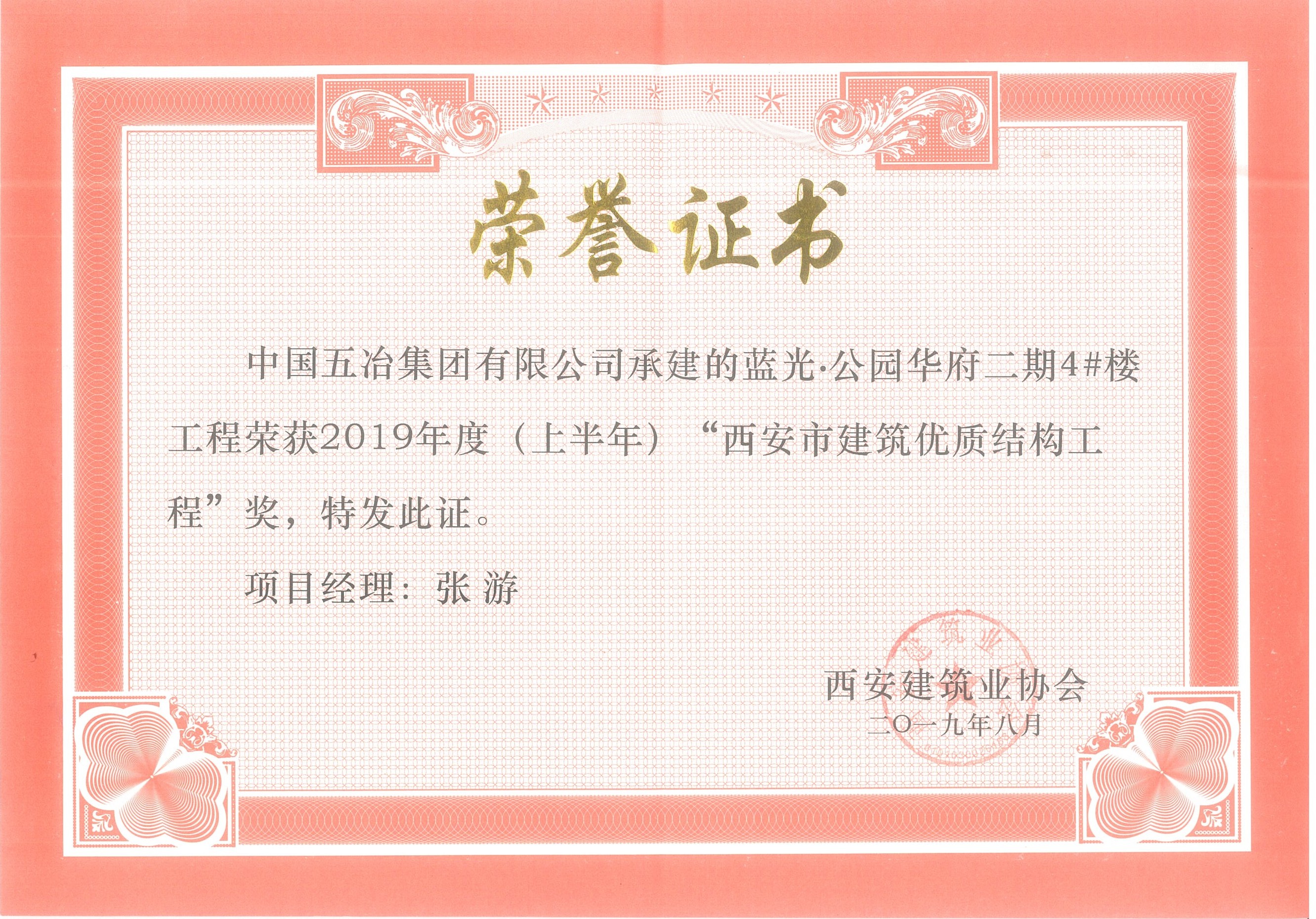 西安藍(lán)光公園華府二期—2019年度(上半年)西安市優(yōu)質(zhì)結(jié)構(gòu)工程