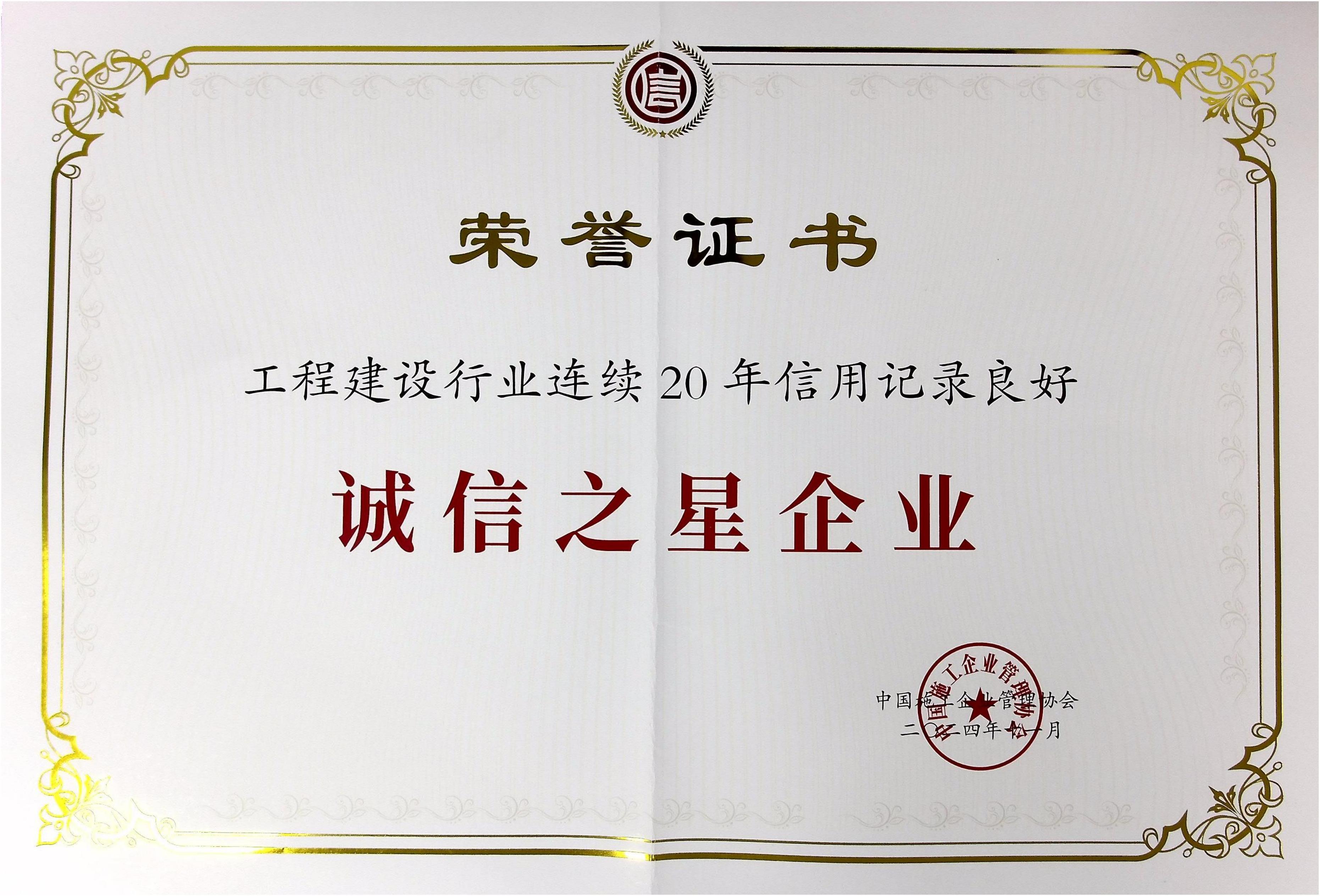 中國工程建設(shè)行業(yè)連續(xù)20年信用記錄良好誠信之星企業(yè)