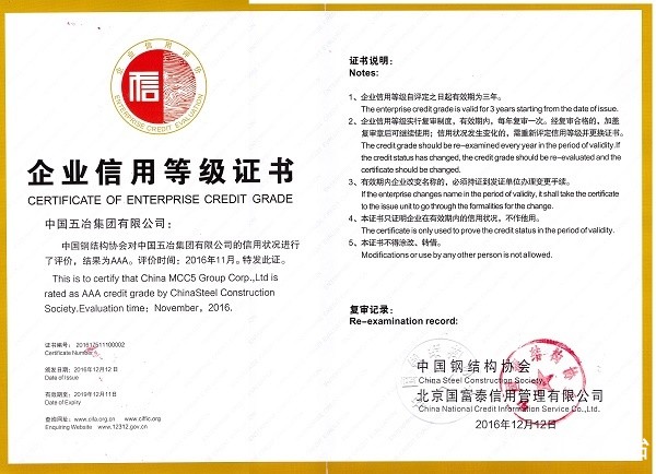 中國鋼結(jié)構(gòu)協(xié)會企業(yè)信用AAA級