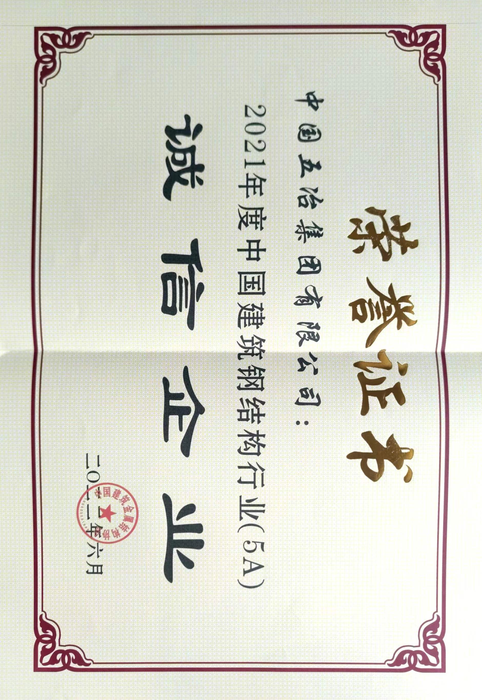 中國建筑鋼結(jié)構(gòu)行業(yè)誠信企業(yè)