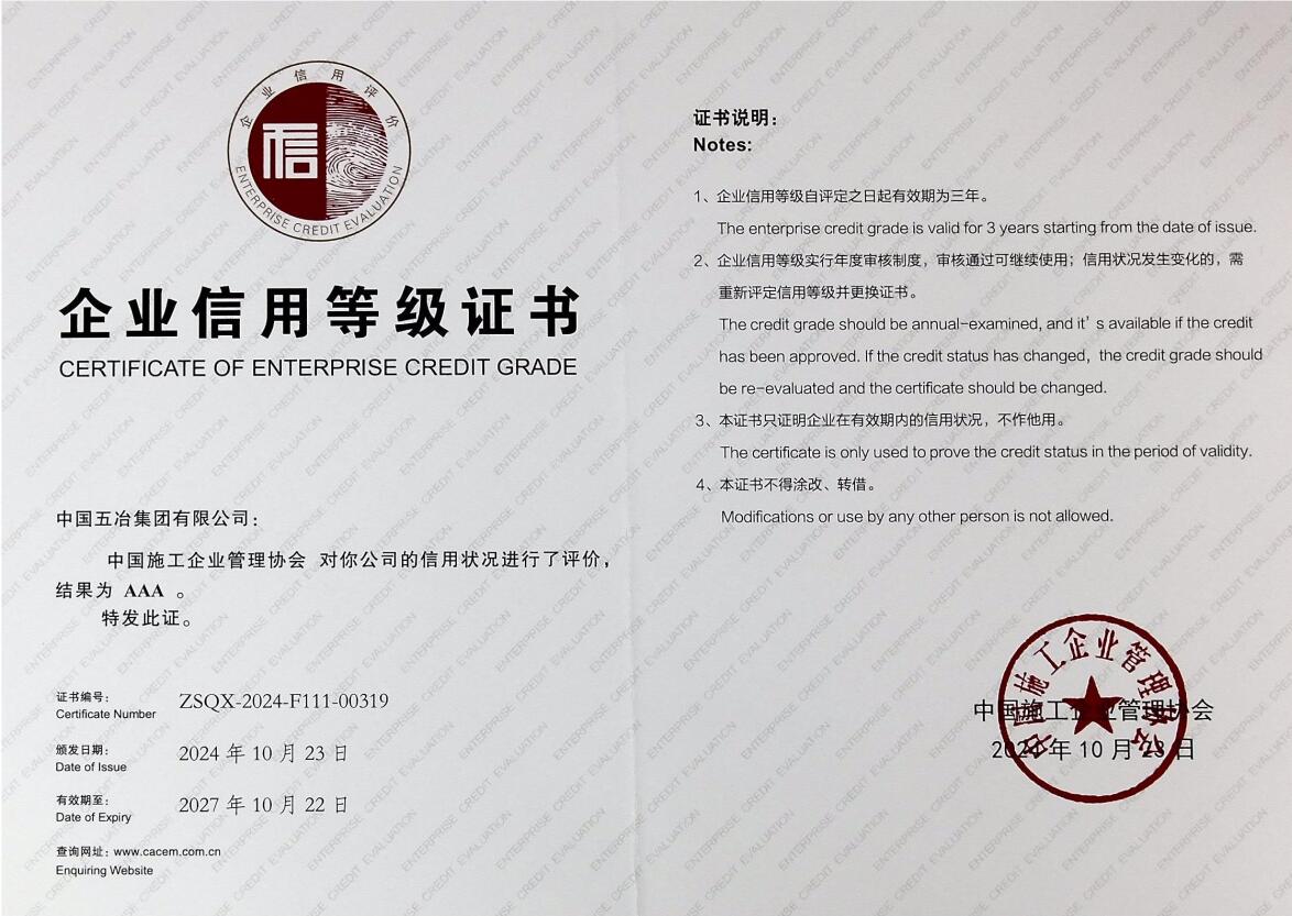 全國施工企業(yè)AAA信用等級(jí)