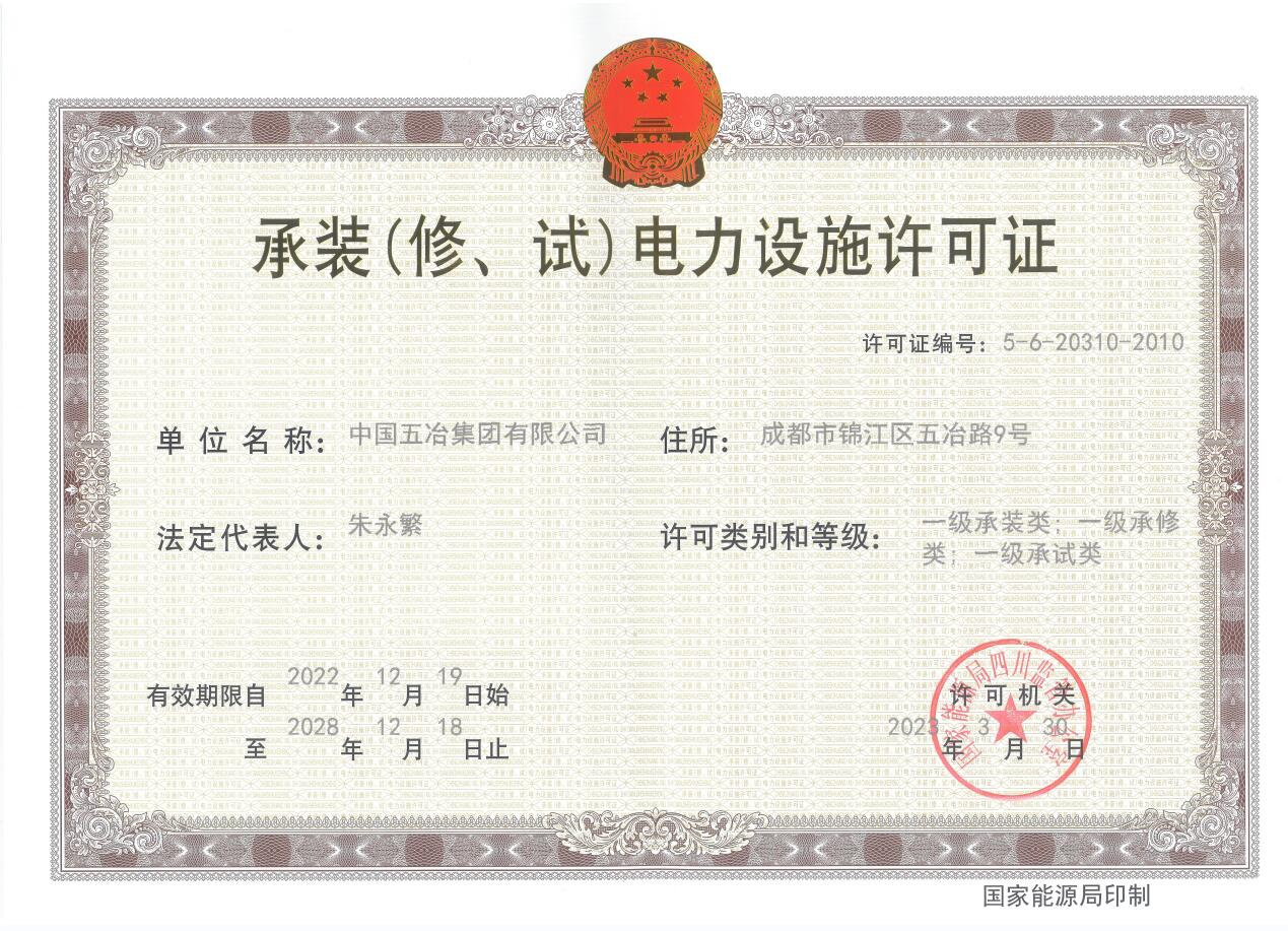 承裝(修、試)電力設(shè)施許可證(一級(jí))