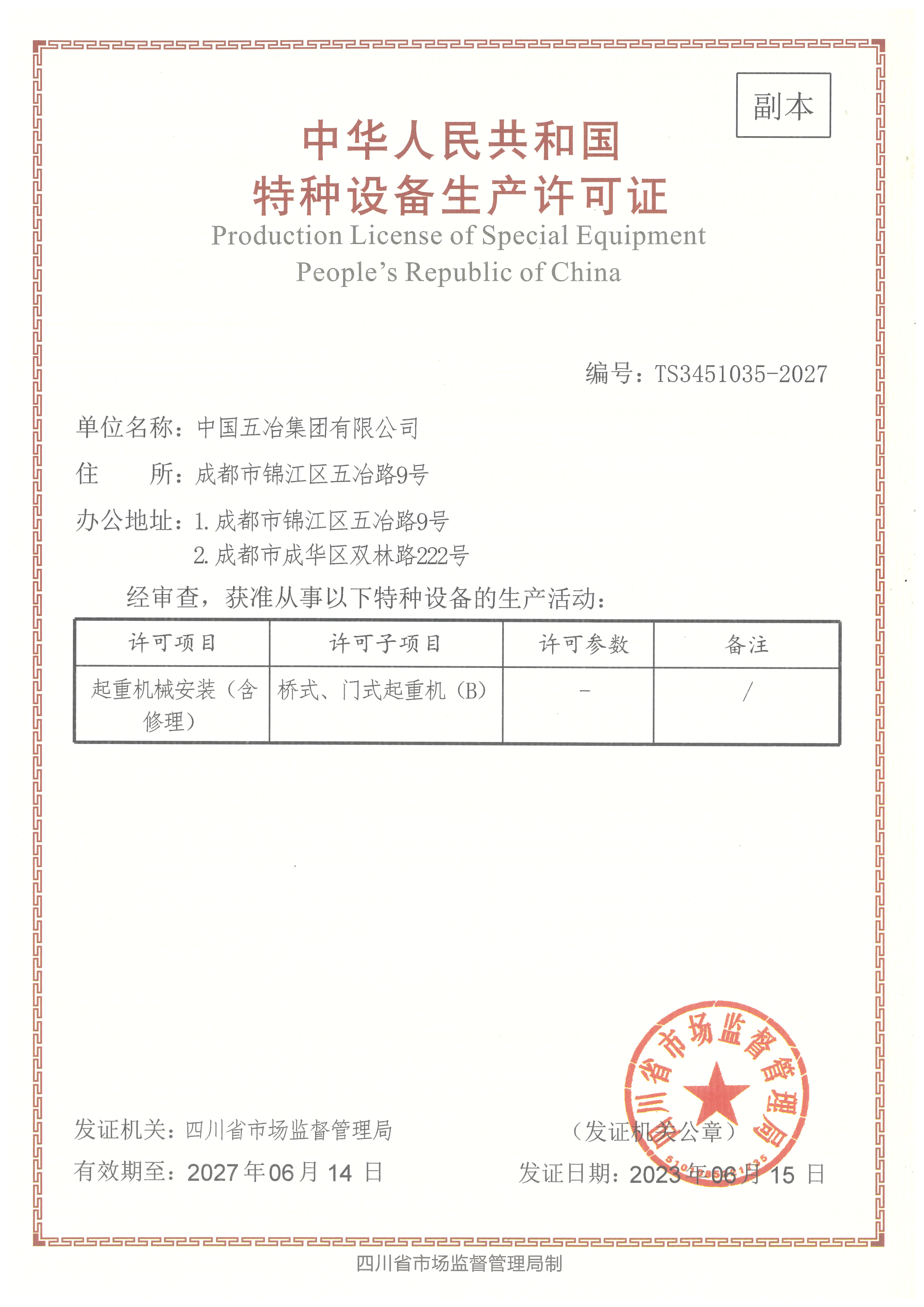 特種設(shè)備生產(chǎn)許可證(起重機(jī)械安裝)