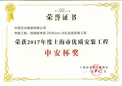 包鋼新體系2030mm冷軋連退安裝工程-2017年度上海市優(yōu)質(zhì)安裝工程申安杯獎