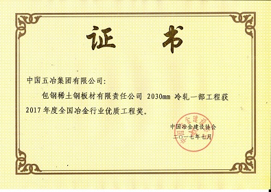 包鋼稀土鋼板材有限責任公司2030mm冷軋一部工程-2017年度全國冶金行業(yè)優(yōu)質(zhì)工程獎