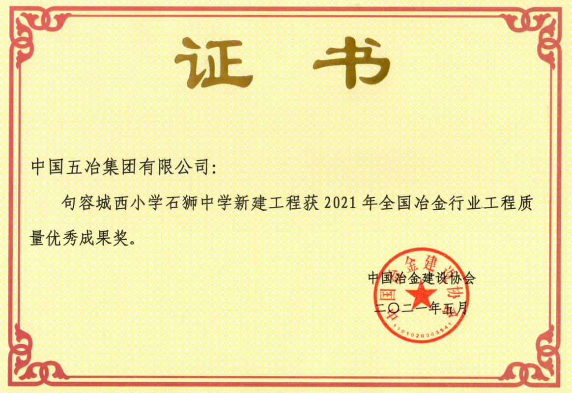 句容城西小學石獅中學新建工程-2021年全國冶金行業(yè)工程質(zhì)量優(yōu)秀成果獎