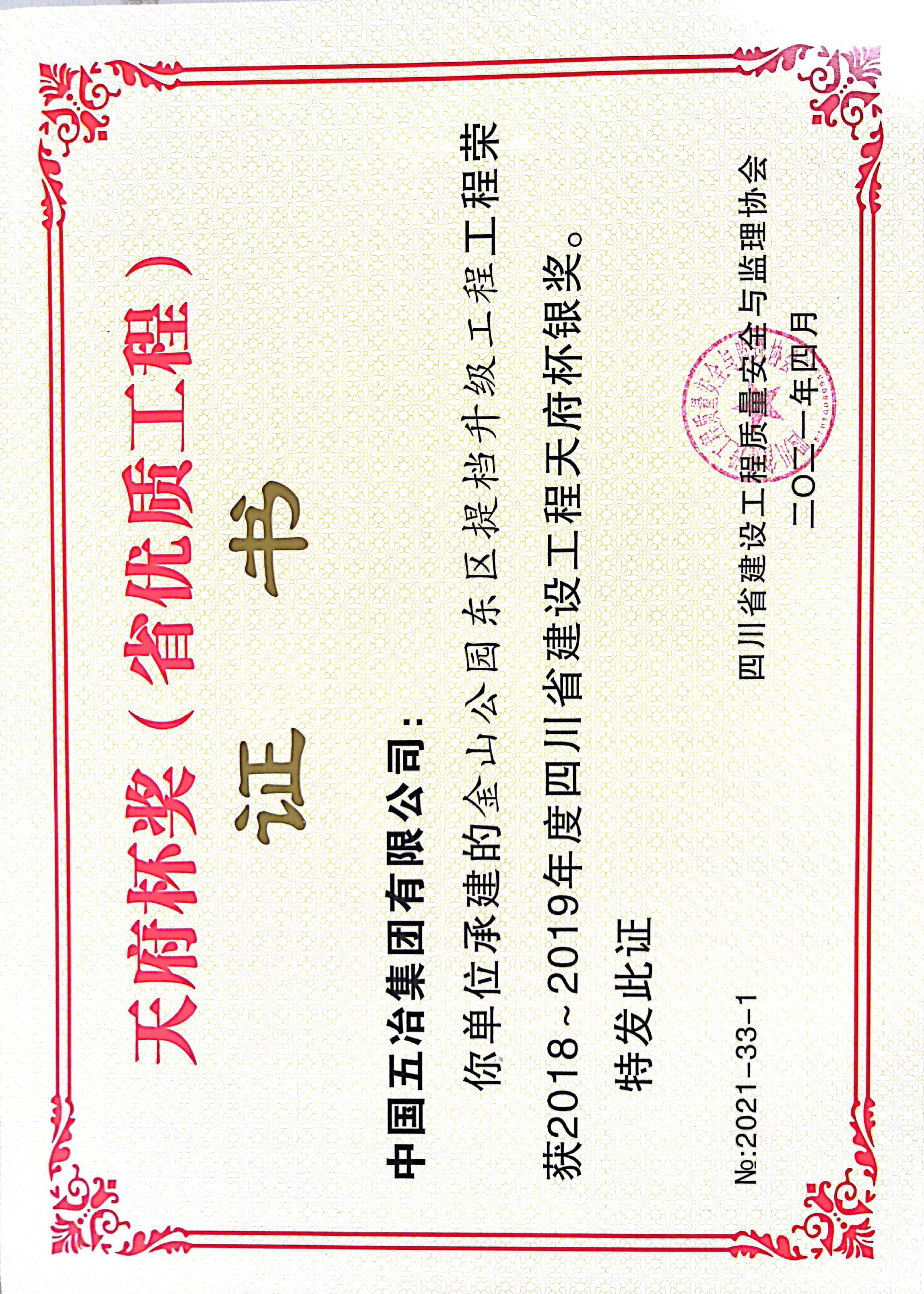 金山公園東區(qū)提檔升級工程-2018~2019年度四川省建設工程天府杯銀獎
