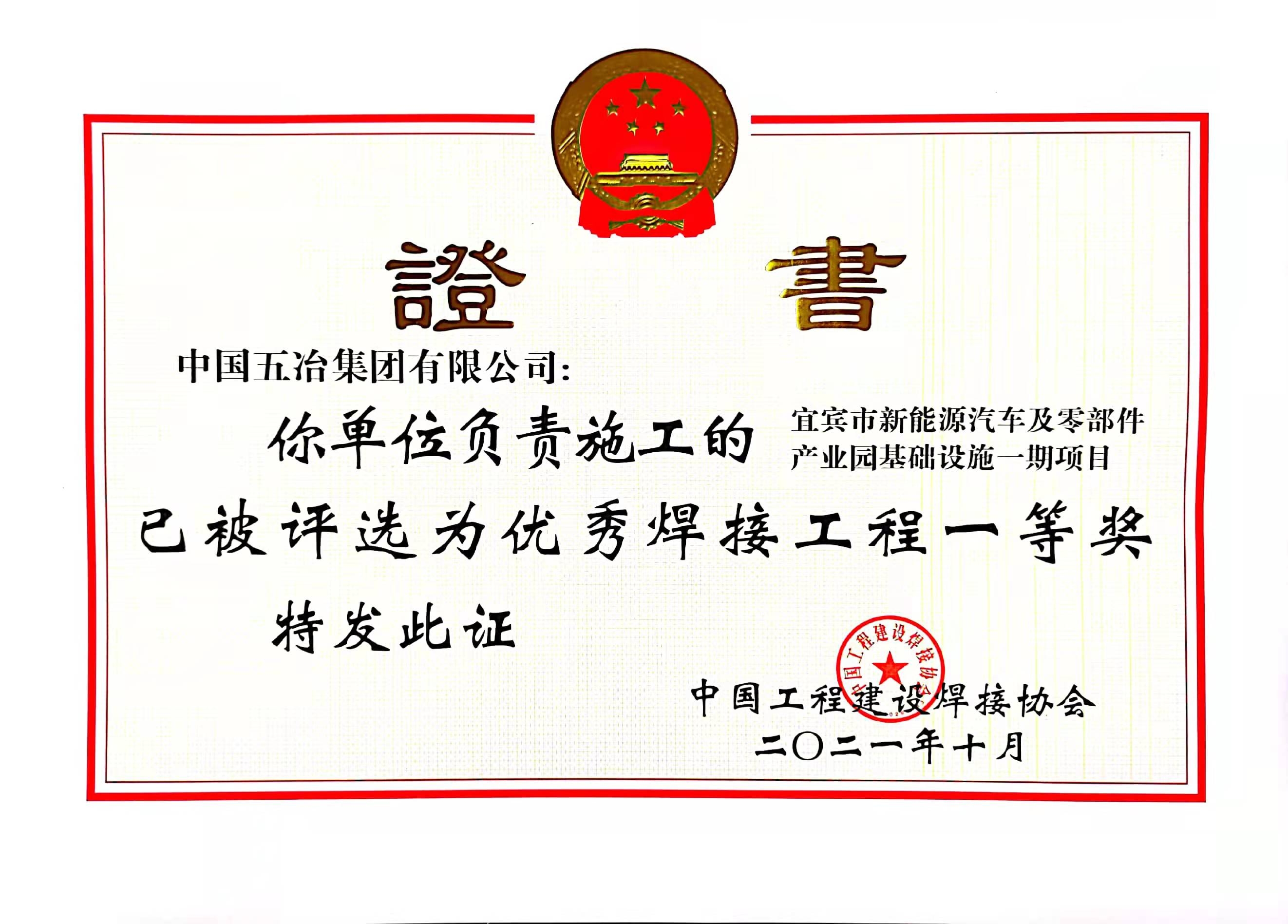 宜賓市新能源汽車及零部件產(chǎn)業(yè)園 基礎設施一期項目-2021年度全國優(yōu)秀焊接工程一等獎