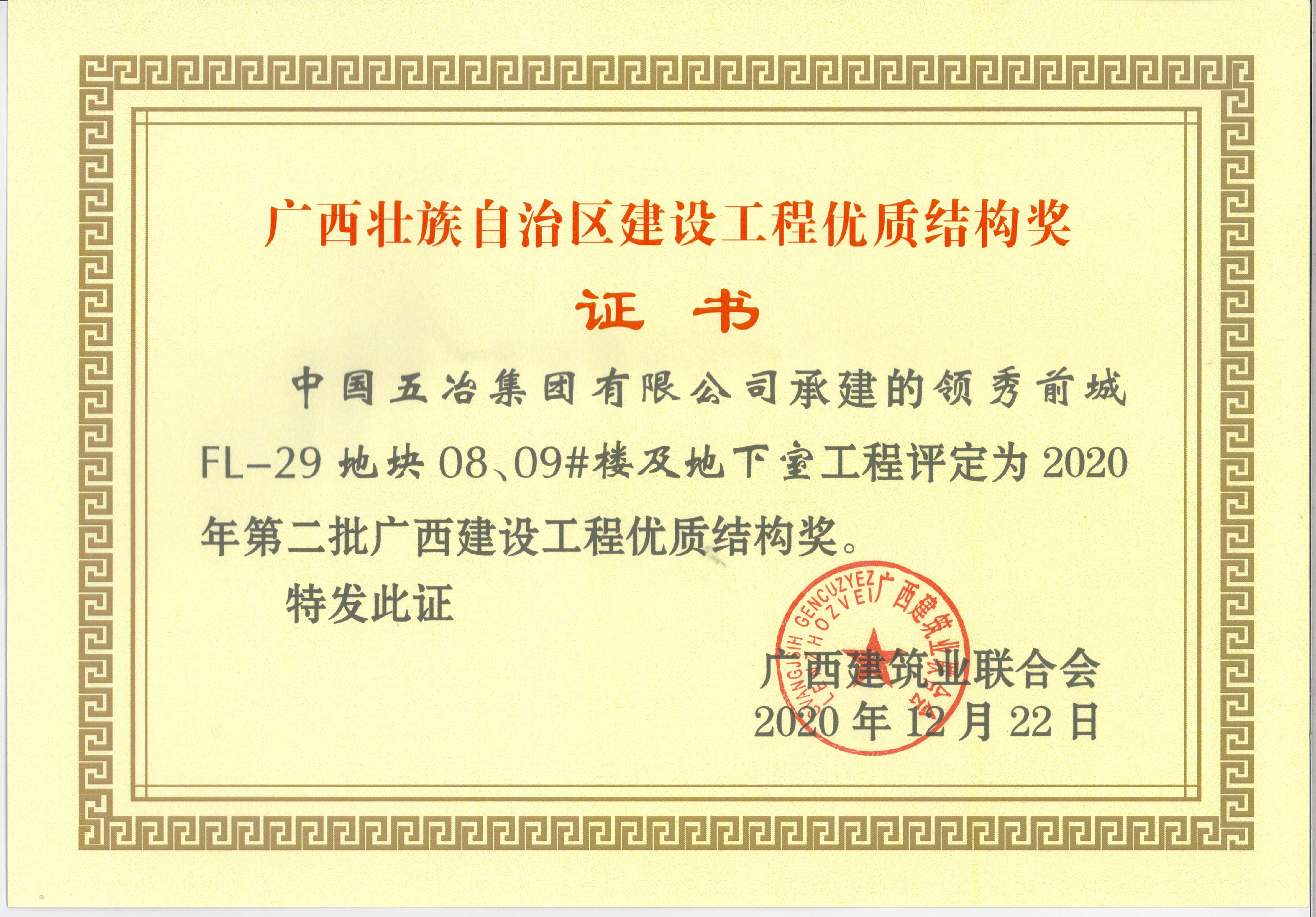 領(lǐng)秀前城FL-29地塊08、09#樓及地下室工程—2020年第二批廣西建設(shè)工程優(yōu)質(zhì)結(jié)構(gòu)獎(jiǎng)