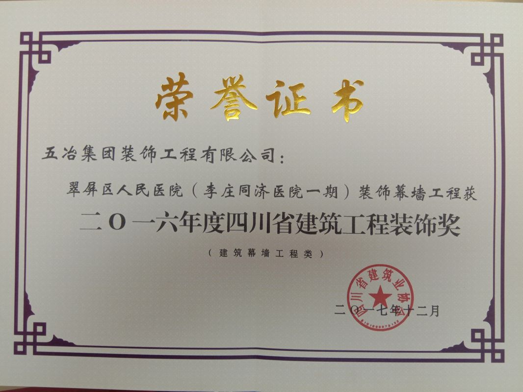 翠屏區(qū)人民醫(yī)院(李莊同濟(jì)醫(yī)院一期)裝飾工程-四川省建筑工程裝飾獎(jiǎng)(幕墻類)