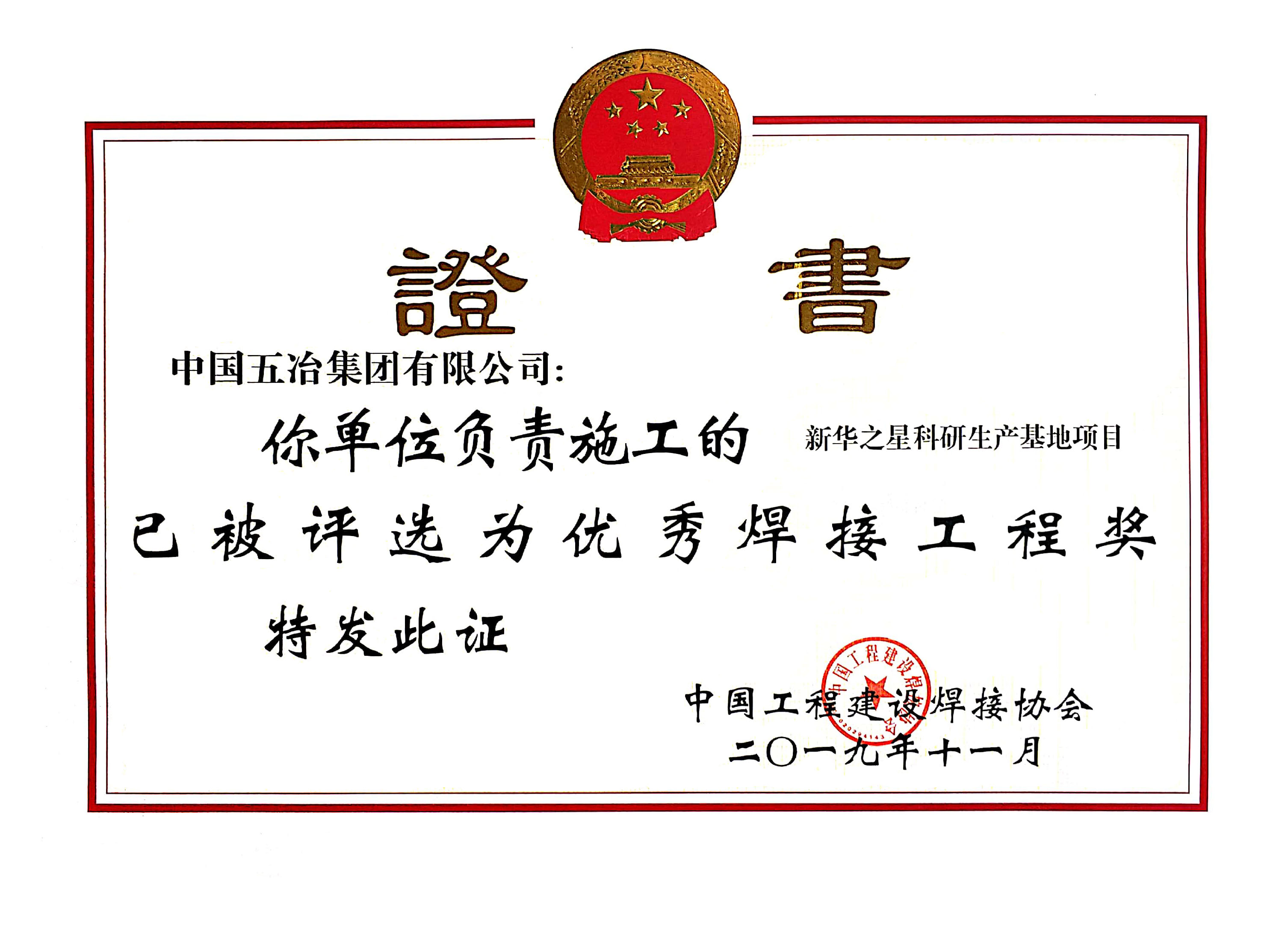 新華之星科研生產(chǎn)基地項目-2019年度全國優(yōu)秀焊接工程獎