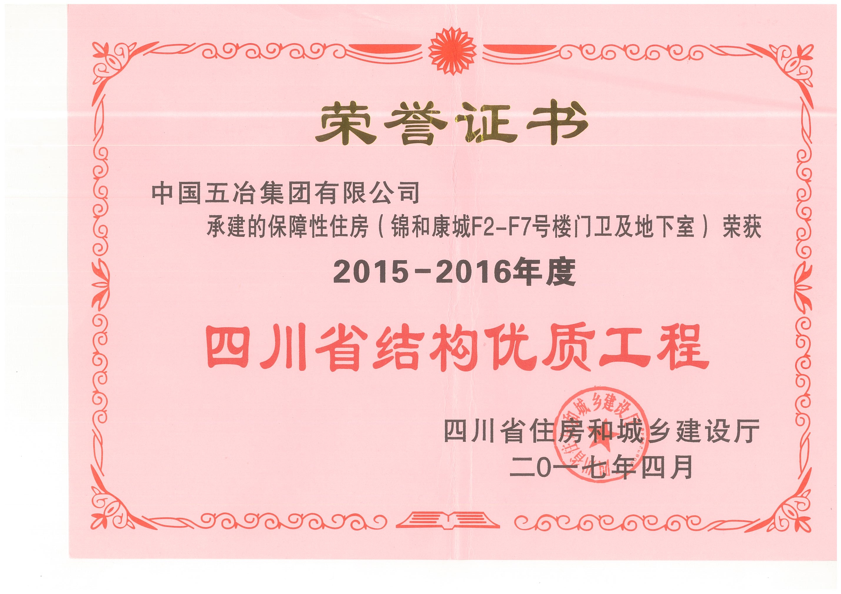 錦和康城F地塊2015-2016年度四川省結(jié)構(gòu)優(yōu)質(zhì)工程