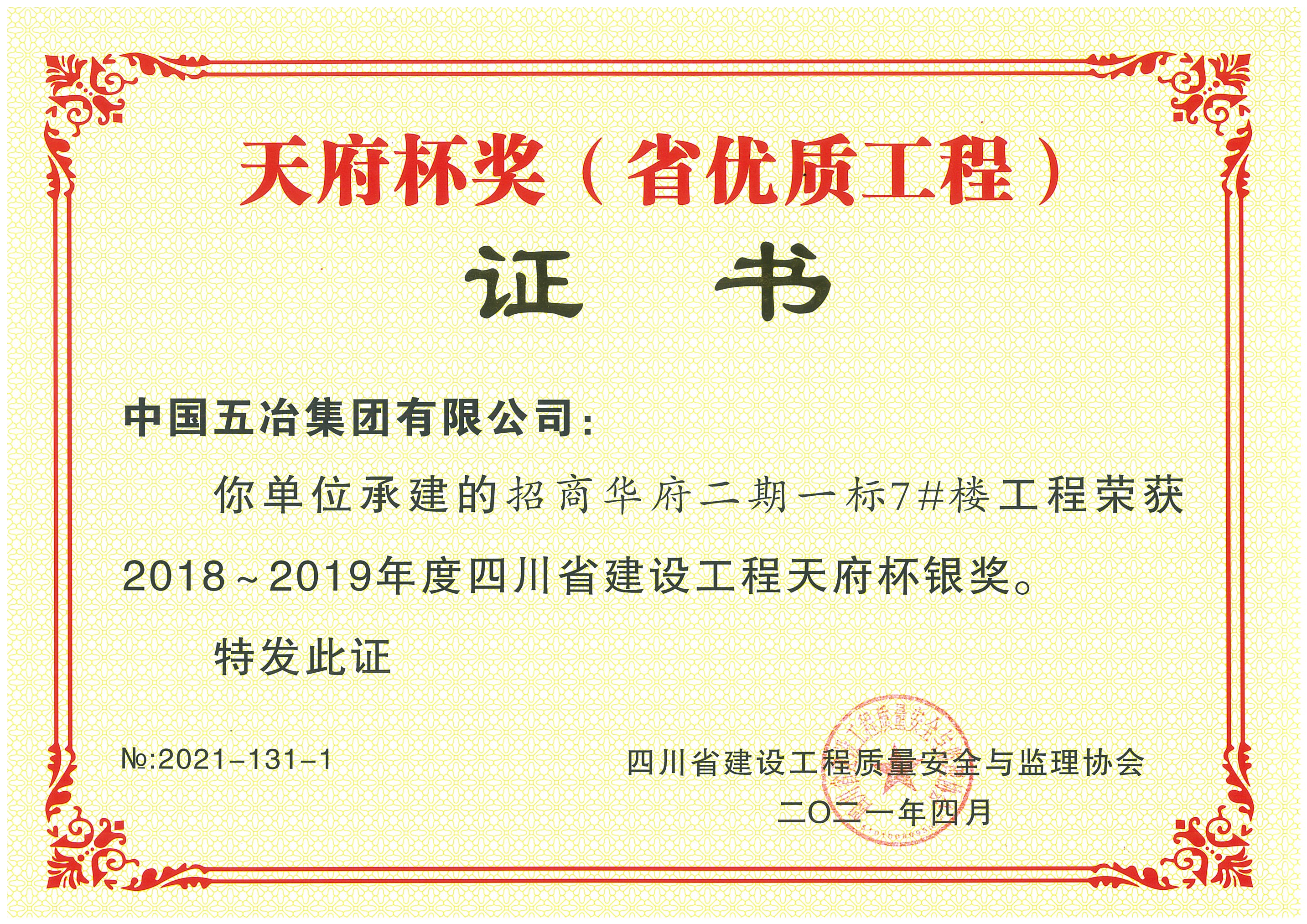 招商華府二期一標(biāo)7#樓工程-2018-2019年度天府杯銀獎(jiǎng)