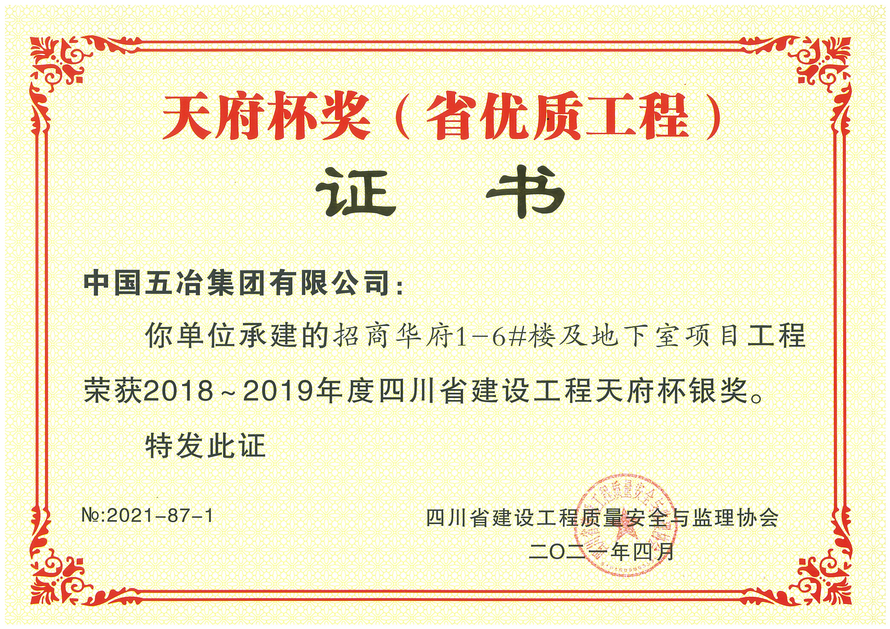 招商華府1-6#樓及地下室項(xiàng)目-2018-2019年度四川省天府杯銀獎(jiǎng)