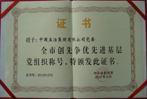 ??? 近日,中共成都市委對2010-2012年度全市創(chuàng)先爭優(yōu)先進基層黨組織和優(yōu)秀共產(chǎn)黨員進行了表彰,中國五冶集團有限公司黨委被授予了“全市創(chuàng)先爭優(yōu)先進基層黨組織”稱號。