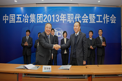 蒙昌嘉與周悅靜簽訂《中國(guó)五冶集團(tuán)工資集體協(xié)議》