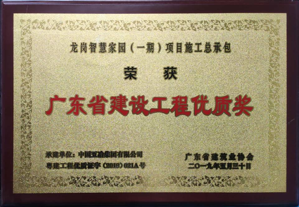 龍崗智慧家園(一期)項目施工總承包榮獲2019年度廣東省建設工程優(yōu)質獎(房屋建筑及專業(yè)工程)