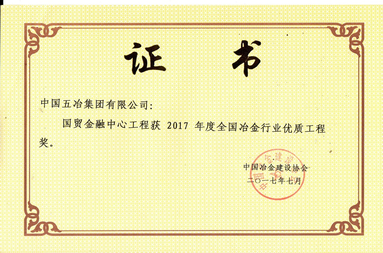 國貿(mào)金融中心工程獲2017年度全國冶金行業(yè)優(yōu)質(zhì)工程獎