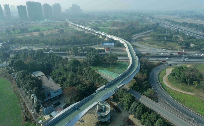五冶承擔裝飾工程的成安渝橋位于成都市繞城高速內(nèi)側(cè),以市樹“銀杏”為主題,全長1502米,高顏值的“樹洞”造型一經(jīng)亮相便火爆出圈。據(jù)悉,“樹洞”造型采用全鋼結(jié)構(gòu),最大高度30.8米,最小彎曲半徑僅有3.2米,在整座橋梁裝飾裝修的過程中,項目團隊采用了三維激光掃描、激光切割等先進技術(shù),最大程度還原“樹洞”和“樹枝”形態(tài)各異的造型。