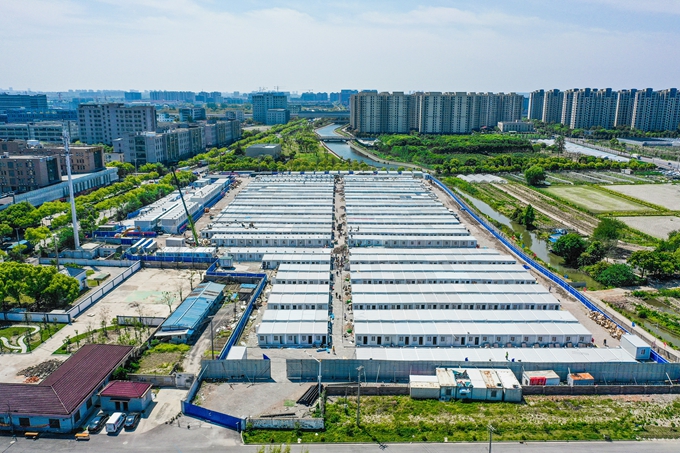 該隔離點(diǎn)位于國(guó)家會(huì)展中心P24停車場(chǎng)內(nèi),占地面積36000平,分為觀察區(qū)、安全區(qū)、限制區(qū),計(jì)劃新建1000間集裝箱板房,建成后最多可容納近2000人,主要用于及時(shí)轉(zhuǎn)運(yùn)隔離密接人員,對(duì)切斷社區(qū)傳播鏈具有重要意義。