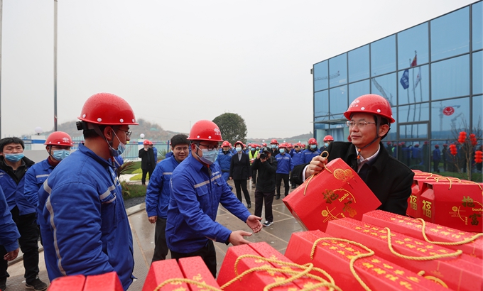 在隨后召開的座談會(huì)上,朱永繁董事長代表集團(tuán)公司黨委會(huì)、董事會(huì)、經(jīng)營層向節(jié)日期間堅(jiān)守崗位、辛勤工作的全體員工、合作伙伴及各位工友表示誠摯的慰問,并向大家拜年,祝大家新年快樂,吉祥如意,幸福安康。