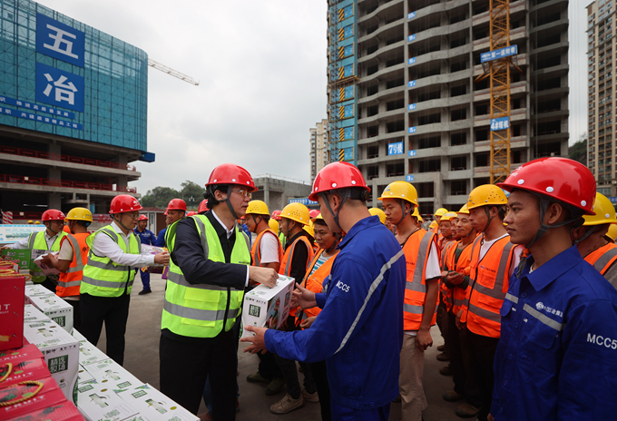 朱永繁董事長一行先后來到宜賓起步廣場、檬子灣安置房、三江新區(qū)大健康醫(yī)療產(chǎn)業(yè)補短板、三江之眼、高新區(qū)產(chǎn)業(yè)新城標準廠房,成都新都區(qū)三河保障性租賃住房、香悅置業(yè)同仁村42畝房地產(chǎn)開發(fā)等7個項目現(xiàn)場,仔細檢查安全生產(chǎn)工作落實和執(zhí)行是否到位,詳細了解項目策劃、工期、技術(shù)、質(zhì)量、經(jīng)營等管理情況,并向一線員工送上牛奶、面包、果汁、方便面、礦泉水等慰問品,對大家在節(jié)日期間堅守崗位、辛勤工作表示問候。