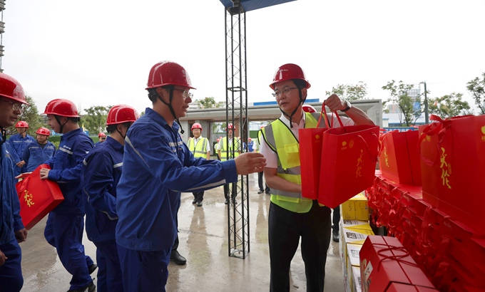 朱永繁董事長(zhǎng)一行先后來到成都潘家溝安置房、高新區(qū)人民醫(yī)院項(xiàng)目現(xiàn)場(chǎng),仔細(xì)檢查安全生產(chǎn)工作落實(shí)和執(zhí)行是否到位,詳細(xì)了解項(xiàng)目策劃、工期、技術(shù)、質(zhì)量、經(jīng)營(yíng)等管理情況,并向一線員工送上月餅、牛奶、面包、水果、方便面、礦泉水等慰問品。在隨后召開的座談會(huì)上,朱永繁董事長(zhǎng)代表集團(tuán)公司黨委、董事會(huì)、經(jīng)營(yíng)層向全體戰(zhàn)高溫斗酷暑、節(jié)日期間堅(jiān)守崗位的員工、合作伙伴及工友致以誠(chéng)摯慰問。他指出,2024年僅剩最后百余天時(shí)間,集團(tuán)公司各項(xiàng)指標(biāo)進(jìn)度和預(yù)期相比差距大,形勢(shì)不容樂觀,挑戰(zhàn)和壓力空前,全體五冶人特別是各級(jí)領(lǐng)導(dǎo)務(wù)必時(shí)刻保持坐不住的危機(jī)感、慢不得的緊迫感和等不起的責(zé)任感,迎難而上,頂壓前行,真抓實(shí)干,攻堅(jiān)奮進(jìn),全力以赴拼經(jīng)濟(jì)、搶進(jìn)度、找增量,沖刺一百天,堅(jiān)決完成全年各項(xiàng)任務(wù)目標(biāo)。