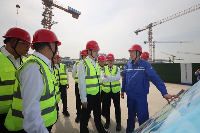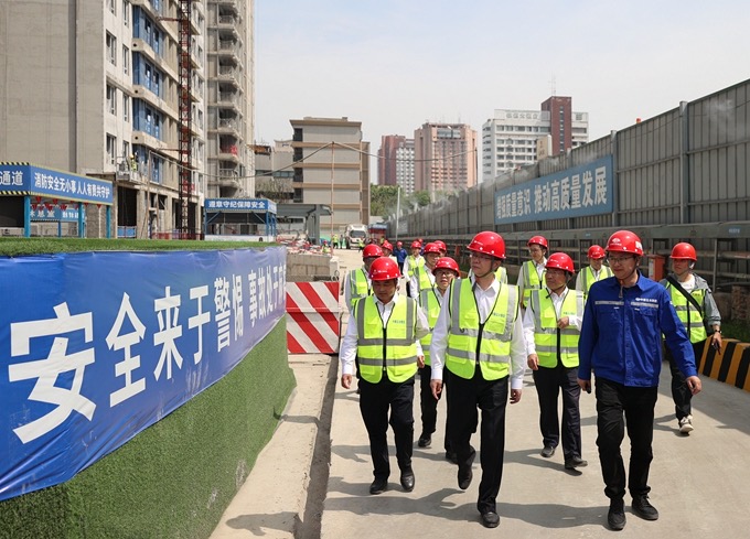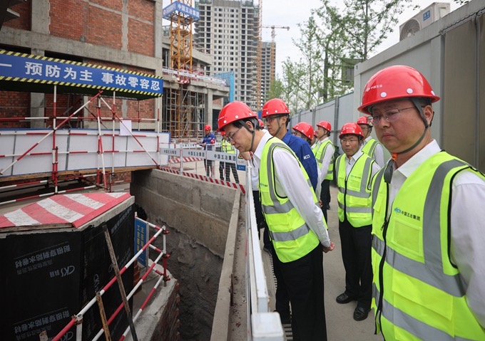 5月3日,“五一”國際勞動節(jié)期間,集團公司黨委書記、董事長朱永繁一行以“四不兩直”方式前往項目現場開展帶班檢查。集團公司領導代小強、張家元,副總經濟師李吉輝,項管部、安監(jiān)部、質環(huán)部、科技部、辦公室負責人,一公司、裝飾公司、市政公司、十二公司總經理參加檢查。