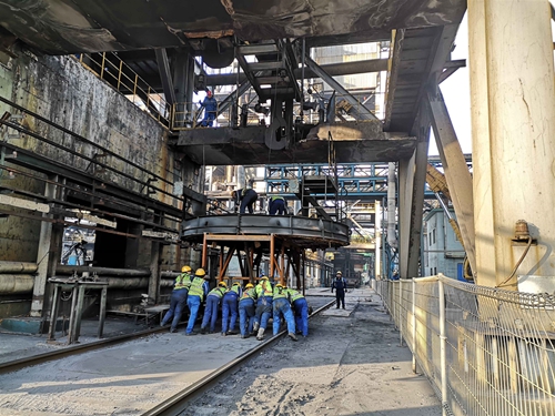 河北安豐鋼鐵有限公司干熄焦定修理現(xiàn)場(chǎng),為保障春節(jié)期間設(shè)備更好運(yùn)轉(zhuǎn),項(xiàng)目人員齊心協(xié)力,抖擻精神,在現(xiàn)場(chǎng)喊起勞動(dòng)號(hào)子,確保定修的最后一道工序——更換焦罐蓋圓滿(mǎn)完成。